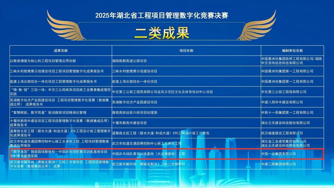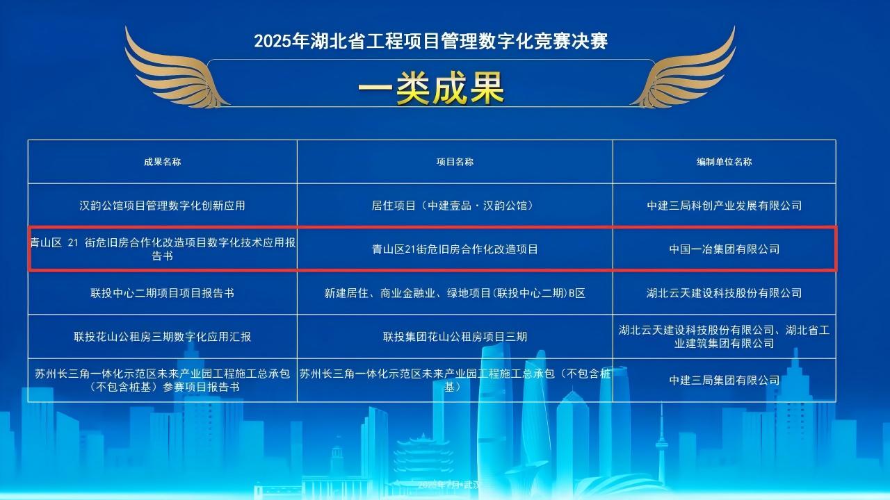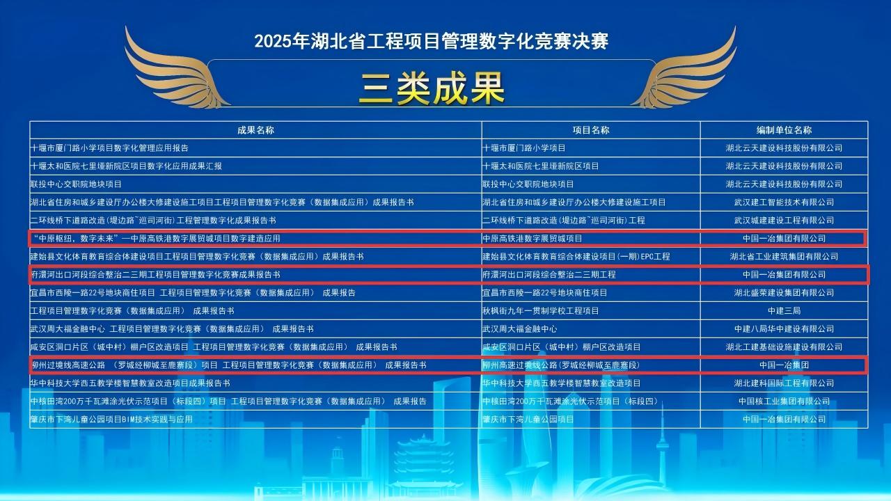 9月10日,2025年湖北省工程項(xiàng)目管理數(shù)字化競(jìng)賽決賽落下帷幕。中國(guó)一冶選送的成果獲一類成果1項(xiàng),二類成果1項(xiàng),三類成果3項(xiàng)。