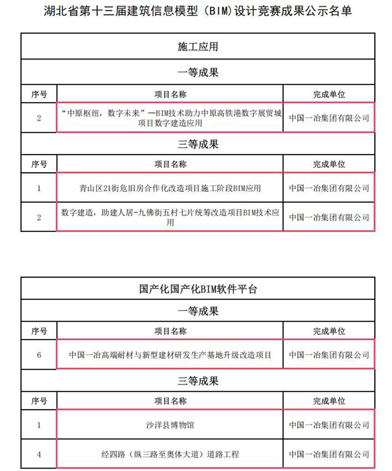 經(jīng)過(guò)初賽、決賽兩輪角逐,公司選送的《“中原樞紐、數(shù)字未來(lái)”-BIM技術(shù)助力中原高鐵港數(shù)字展貿(mào)城項(xiàng)目數(shù)字建造應(yīng)用》獲評(píng)施工應(yīng)用類(lèi)一等成果,《青山區(qū)21街危舊房合作化改造項(xiàng)目施工階段BIM應(yīng)用》《數(shù)字建造、助建人居-九佛街五村七片統(tǒng)籌改造項(xiàng)目BIM技術(shù)應(yīng)用》分別獲評(píng)施工應(yīng)用類(lèi)三等成果。《中國(guó)一冶高端耐材與新型建材研發(fā)生產(chǎn)基地升級(jí)改造項(xiàng)目》獲評(píng)國(guó)產(chǎn)化BIM軟件平臺(tái)類(lèi)一等成果,《沙洋縣博物館》《經(jīng)四路(縱三路至奧體大道)道路工程》獲評(píng)國(guó)產(chǎn)化BIM軟件平臺(tái)類(lèi)三等成果。